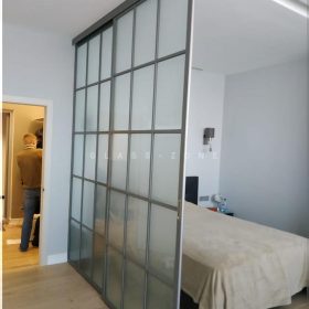 - Стеклянные перегородки. Этот вариант идеален для создания светлой и элегантной обстановки. Стеклянные перегородки могут быть матовыми или глянцевыми, а также иметь различные рисунки и узоры.