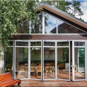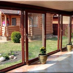 - Раздвижные перегородки с двусторонним открыванием: позволяют создать отдельные зоны с двух сторон беседки.