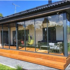 - Раздвижные перегородки с односторонним открыванием: идеально подходят для создания зоны отдыха с одной стороны беседки.