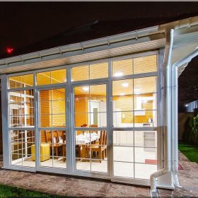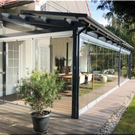 - Раздвижные перегородки с крышей: обеспечивают дополнительную защиту от солнечных лучей и дождя, а также добавляют элемент дизайна к беседке.