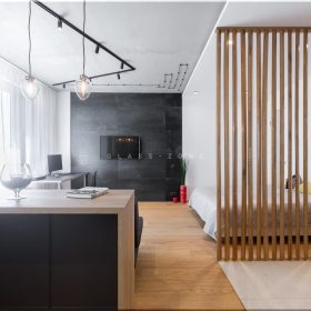 - Стеклянные реечные перегородки: идеально подходят для создания ощущения пространства и света.